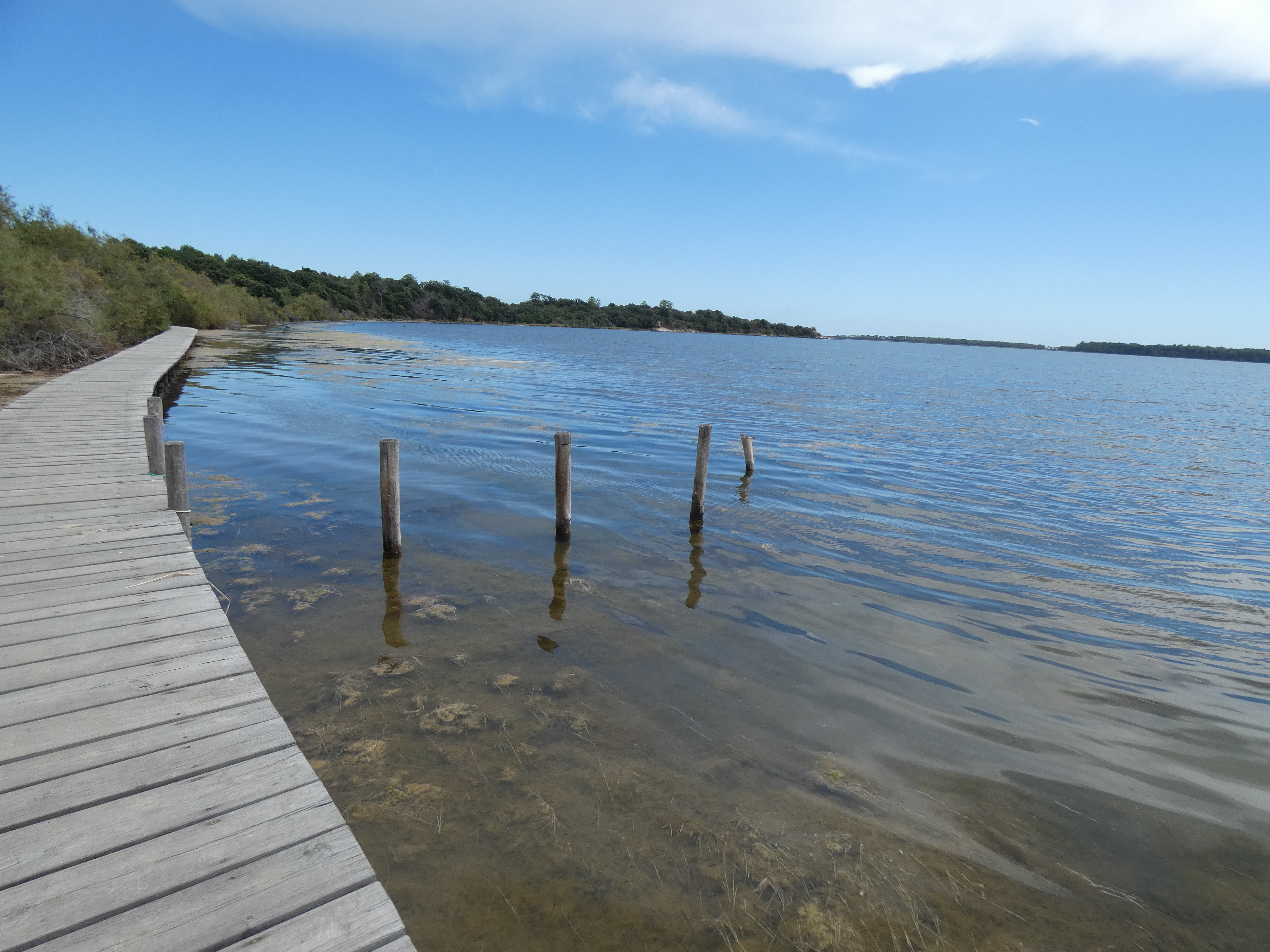 Étang protégé, calme et paisible. S'étendant sur 70 hectares. À droite vous trouverez une cabane vous expliquant l'histoire et la faune de l'étang, un peu de culture ne fait jamais de mal 😉 Un petit sentier a été aménagé sur la gauche, vous amenant à une passerelle offrant une splendide vue sur l'eau. Vous pourrez profiter de ce moment de détente pour admirer les montagnes au loin ou bien les poissons nageant en toute sérénité. Compter 40mn aller / retour pour faire la balade. Au pied du début du sentier ce trouve un sympathique restaurant sur pilotis, je vous le conseille. Une petite boutique de souvenirs sera sur votre gauche, bijoux en œil de Sainte Lucie, en corail et même vêtements et sculpture bois (pensez à vous arrêter ça vaut le coup d'œil et en plus ce n'est pas très cher)
