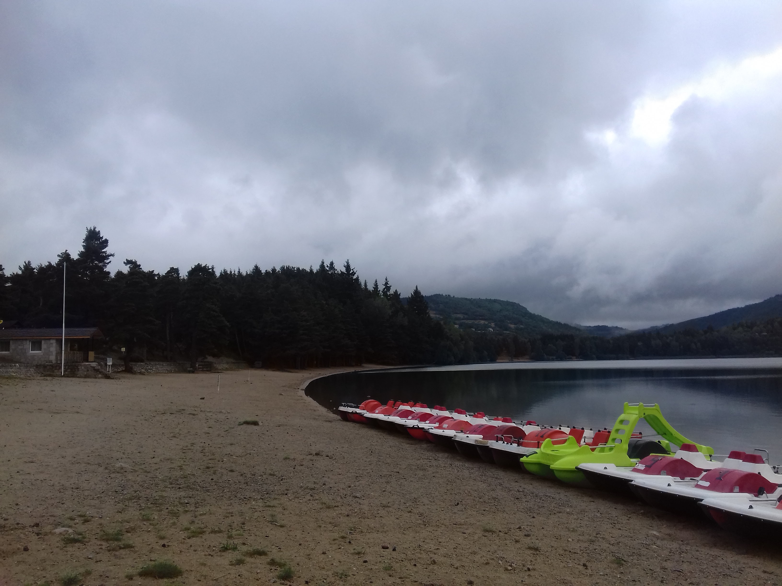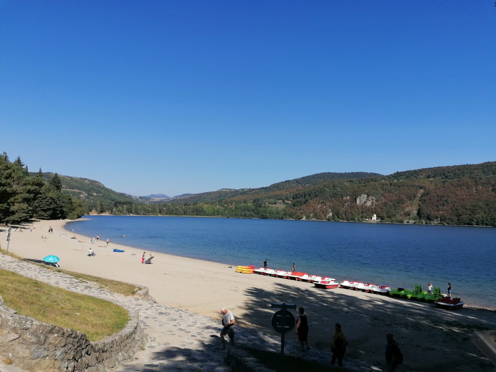 Très beau lac . Plage de sable . Température agréable. Possibilité de louer des Pédalos