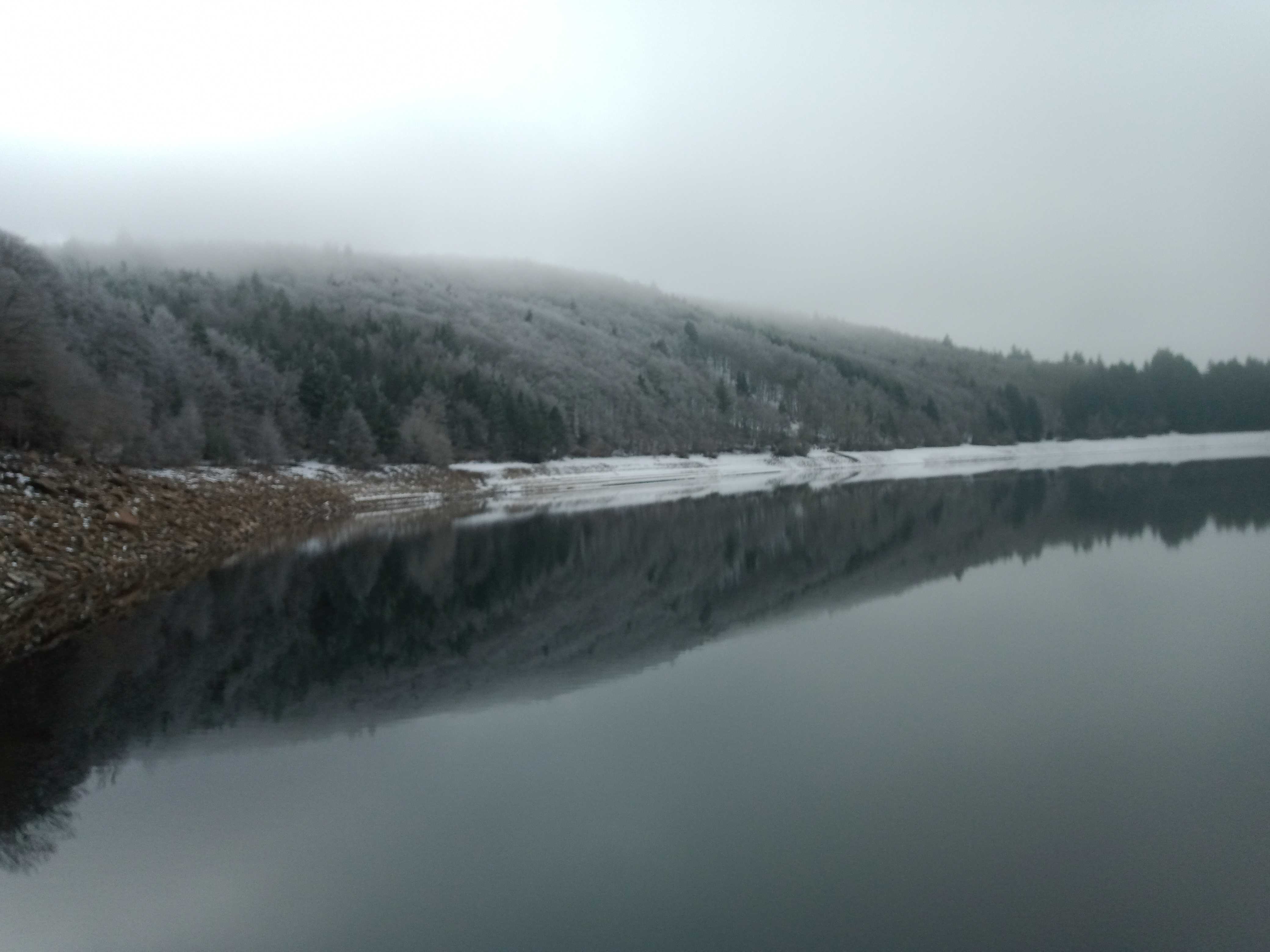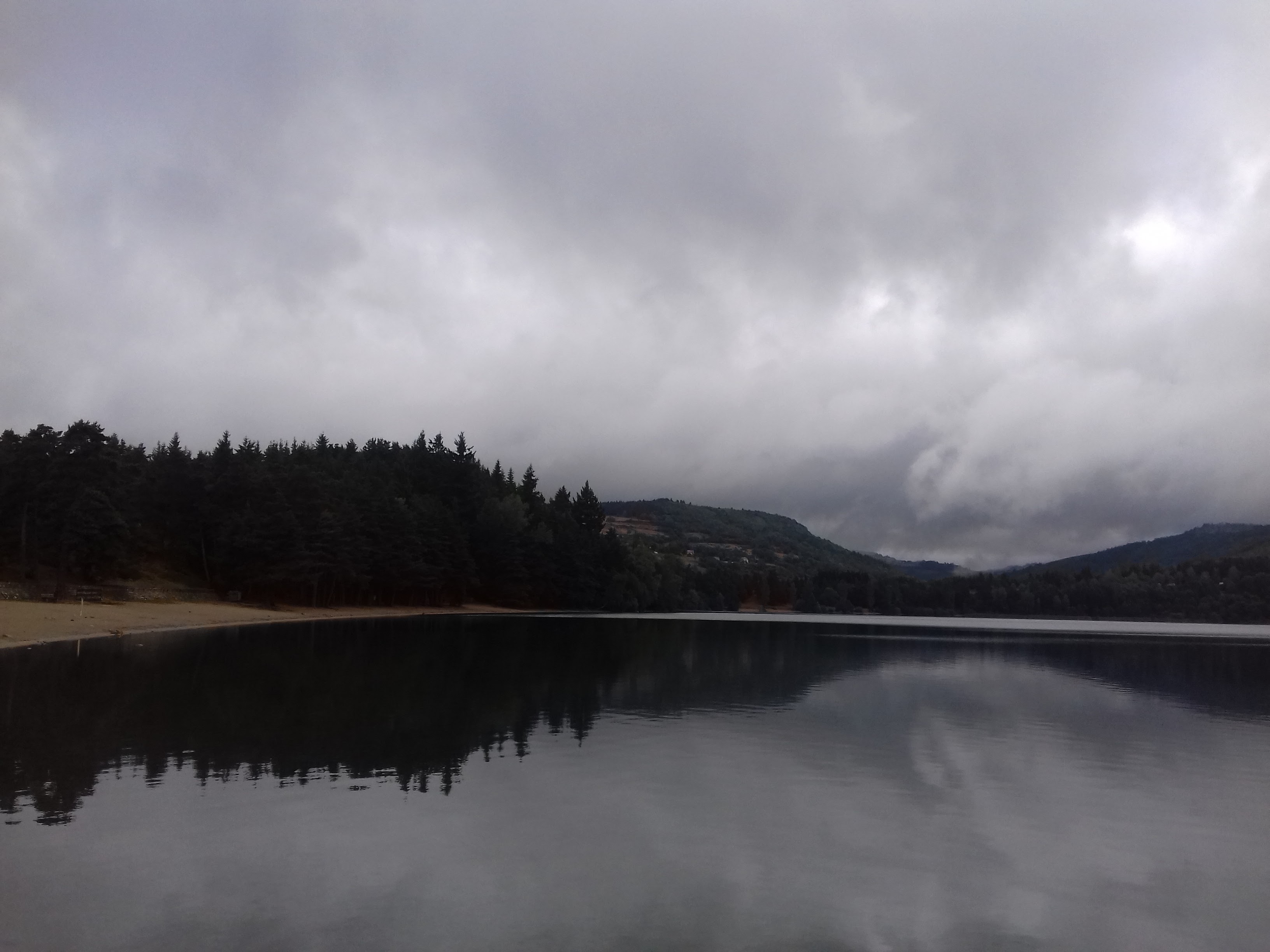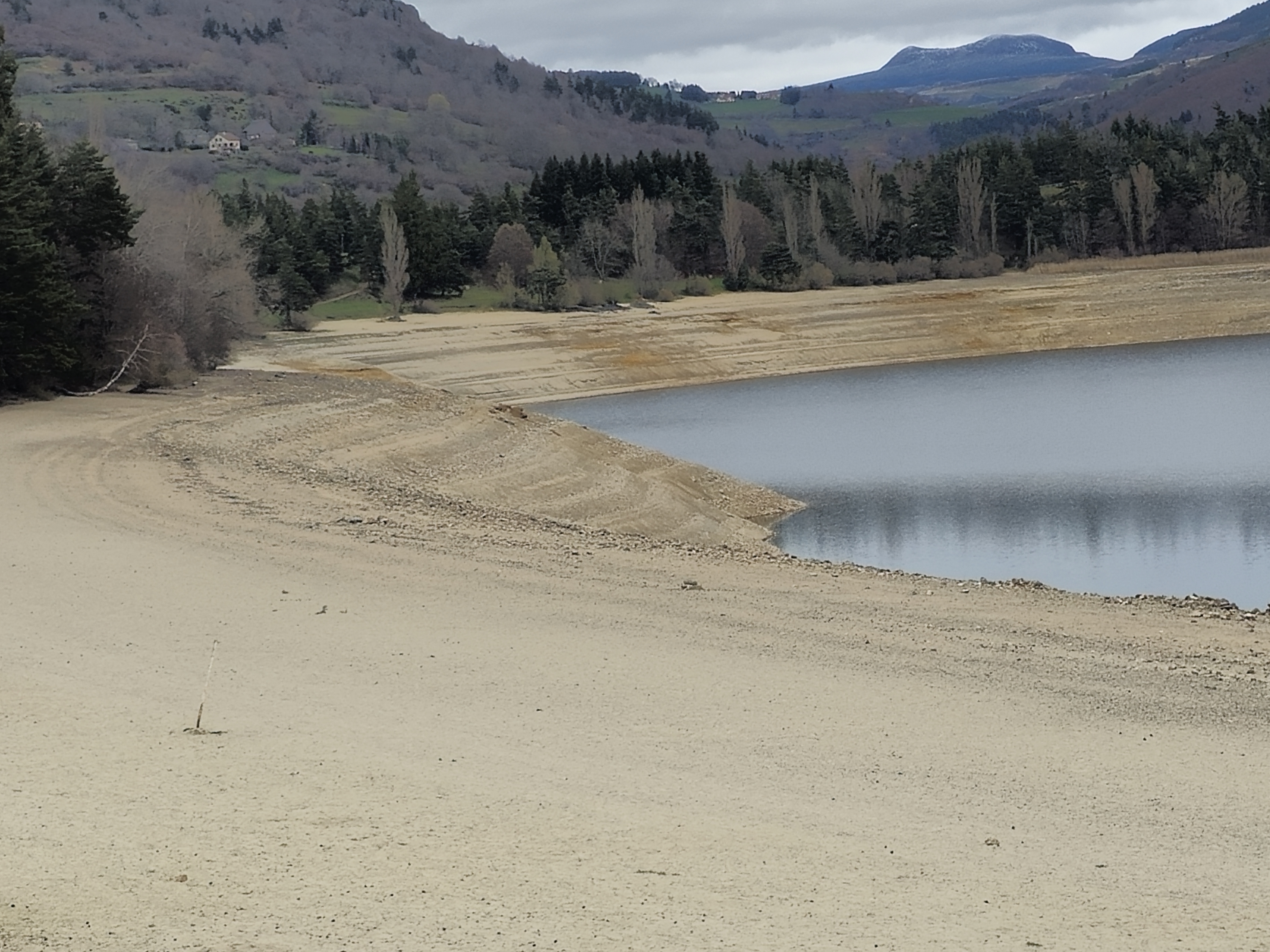 On voit bien que c'est un ancien cratère. Nettement plus petit que Naussac. Actuellement niveau bien bas, c'est tristounet