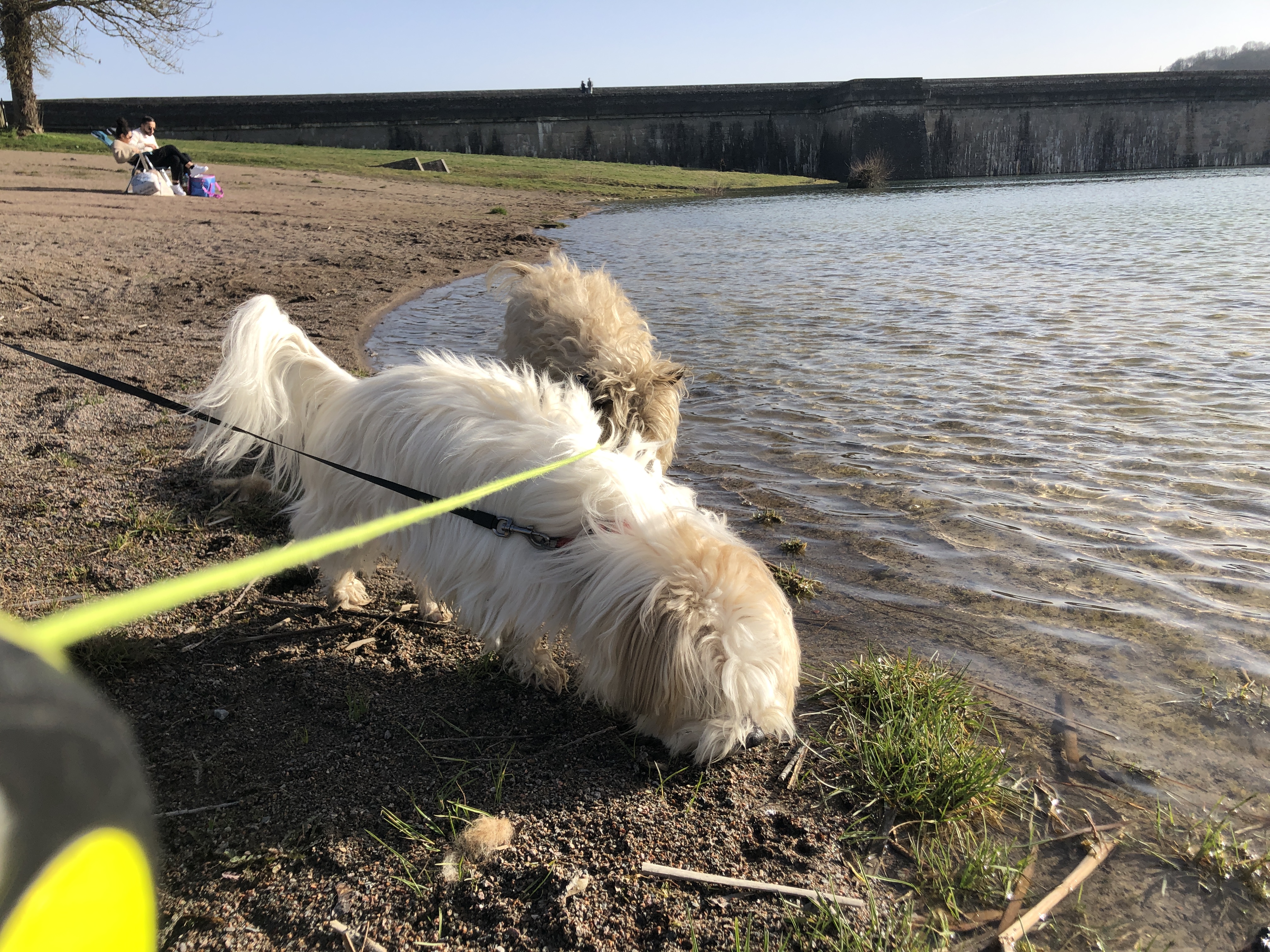 La boutique de plage et encore non ouverte, mais les chiens trouvent le plaisir à nager et à se défouler, en parfaite accord ou harmonie avec la nature sans jugement des pêcheurs, merci à eux et merci au duché de Bourgogne !