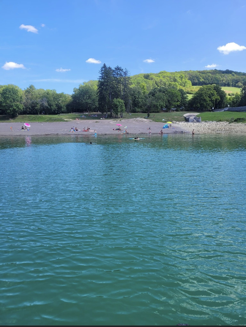 Beau lac pour la baignade. Les niveaux d'eau ont baissé depuis notre séjour l'année dernière. Ombre sous les arbres, chiens acceptés. Zone de sable graveleux et zones herbeuses ombragées. Bon stationnement.